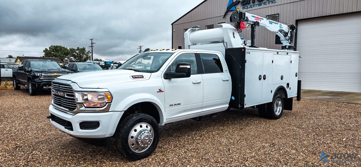 This is a work-ready truck package with the 2024 Ram 5500 Crew Cab Laramie Truck, Milron 11 Series Body, & Cobra 5500 RSE Crane.